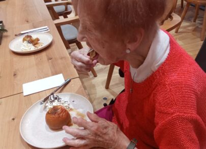 Unsere lieben Mitarbeiterinnen vom Sozialkulturellen Dienst haben gemeinsam mit unseren Bewohnern ein weihnachtliches Dessert kreiert. 🎄😍 In unserem Stüberl gab es für alle Leckermäuler herrlich duftenden Bratapfel mit feiner Soße, süßer Sahne und Schokostreuseln obendrauf! 🍎🍨 Naaaa? Wem läuft bei dem Anblick auch das Wasser im Mund zusammen? 🤤