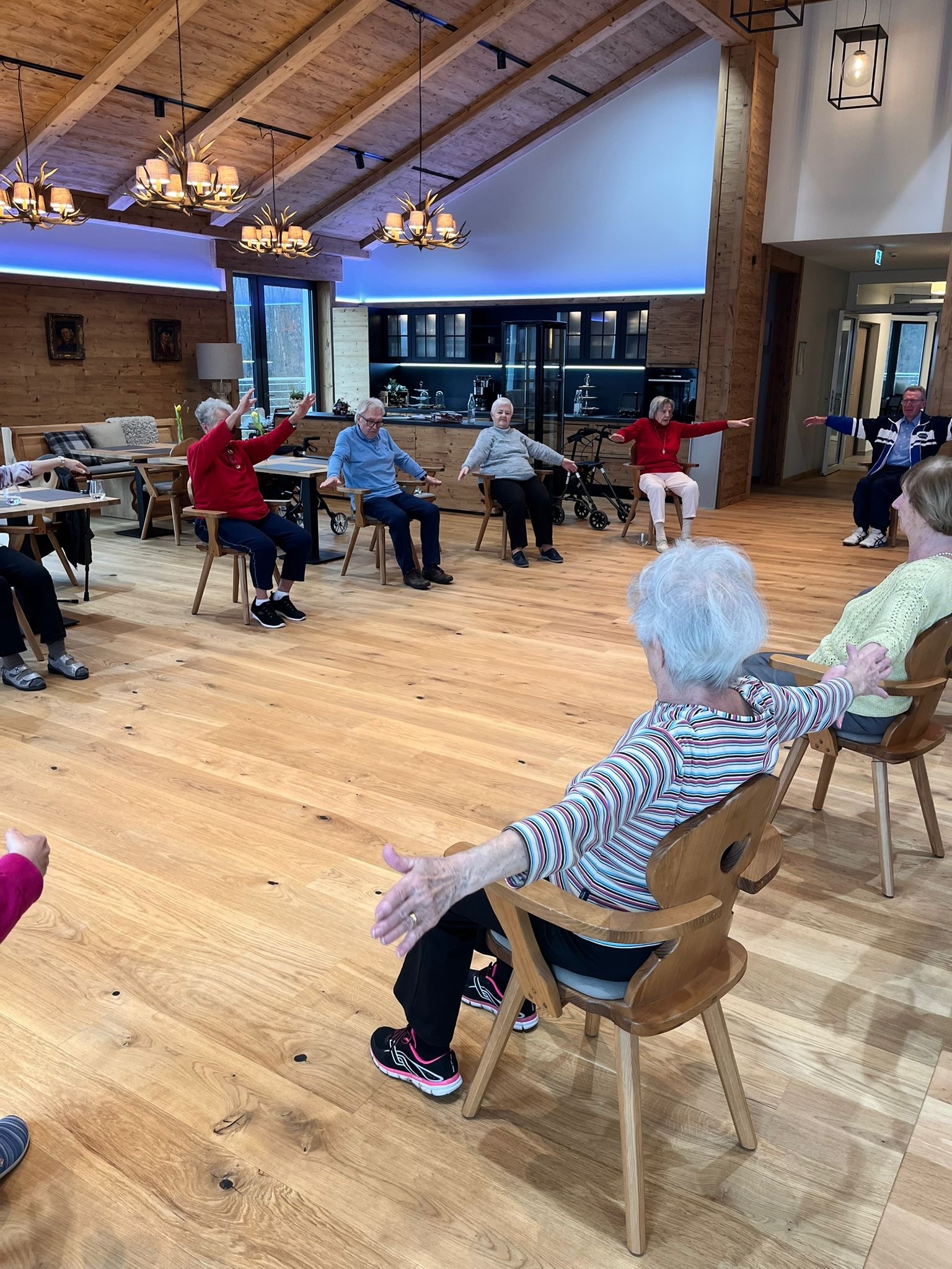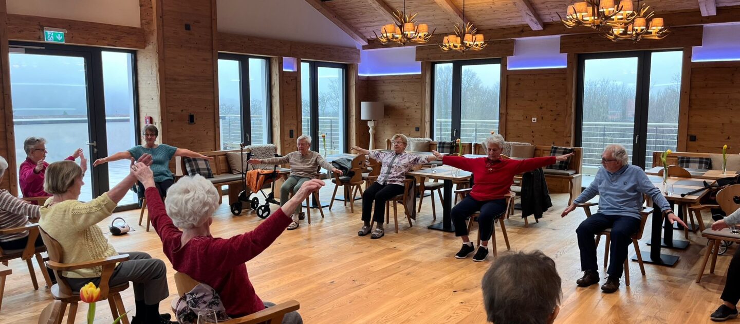 Im Stüberl unseres Seniorenwohnparks hat sich vor Kurzem zum ersten Mal der Fitness-Club getroffen. 💪 Das neue Aktiv-Angebot findet ab sofort wöchentlich statt und bringt ordentlich Schwung in den Alltag unserer lieben Bewohner. 👯♂️ Unsere Hausdame Birgit gibt den Takt vor und alle machen mit! 🙌😊